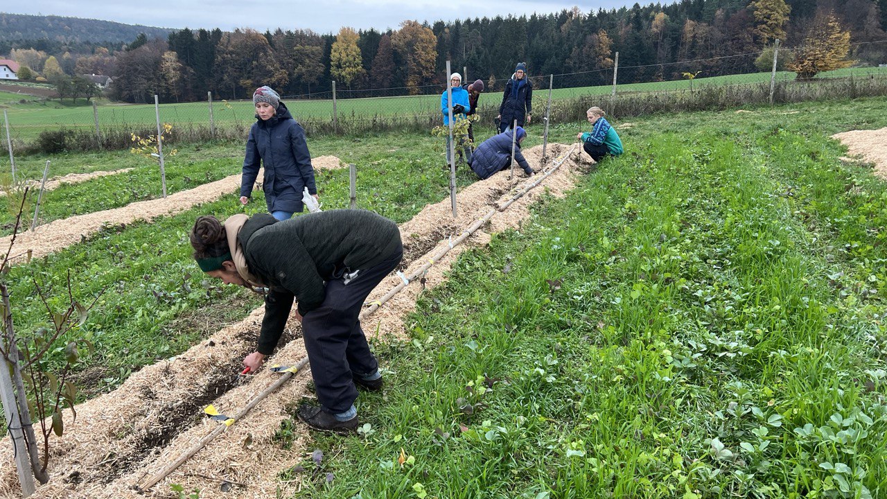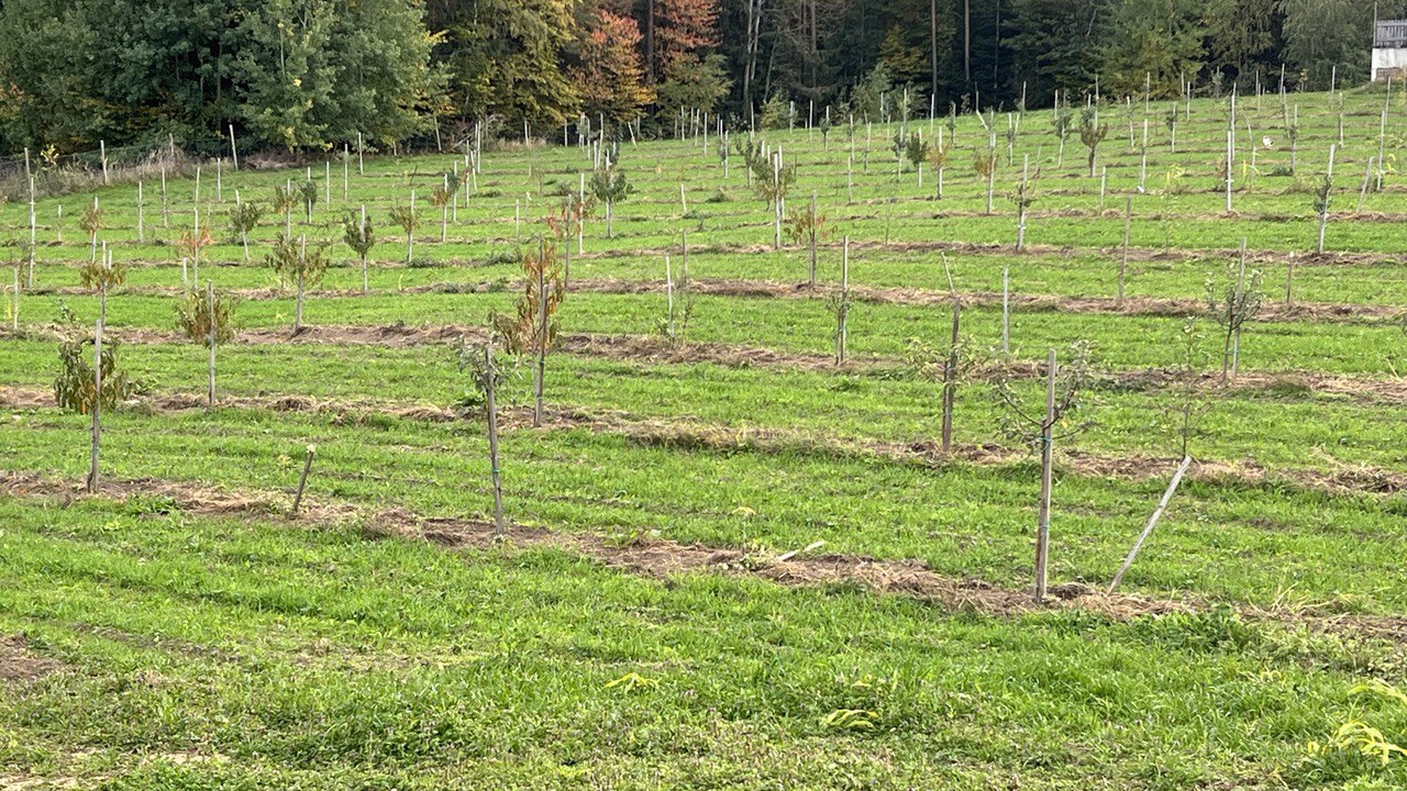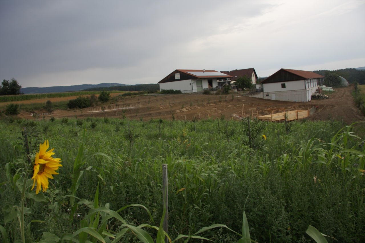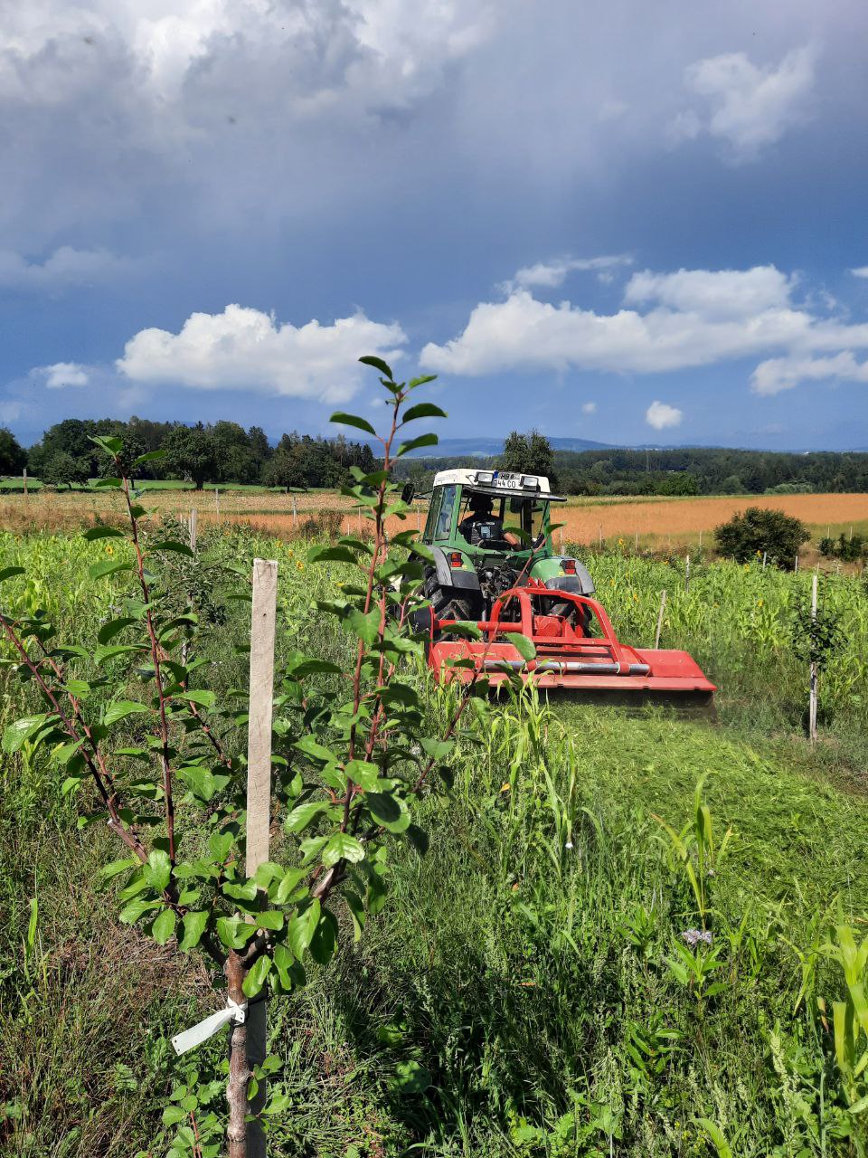 Es ist unser jüngstes Projekt und wurde 2021 gestartet. Neben einem naturnahen Speicherteich ohne Folie entsteht ein diverses Zusammenspiel aus Obst- und Waldbäumen. Die Idee und Konzeption stammt von Ernst Götsch und seiner Syntropischen Landwirtschaft. Auf diesem halben Hektar befinden sich 250 Obstbäume von Apfel, Birne, Pfirsich, Kirsche, Nektarine, Zwetschke, Kriecherl, Marille, Mandel, Nuss und 200 Waldbäume von Weide, Schwarzerle und Gleditschie. Seit 2022 haben wir das System nun um weitere Stecklinge und diverse Saaten ergänzt. Die unglaubliche Vielfalt und das planen von Lebenszyklen von über 200 Jahren hat uns einen noch weitere Dimension von Landwirtschaft entdecken lassen. Wir sind gespannt, was sich hier noch alles entwickelt.